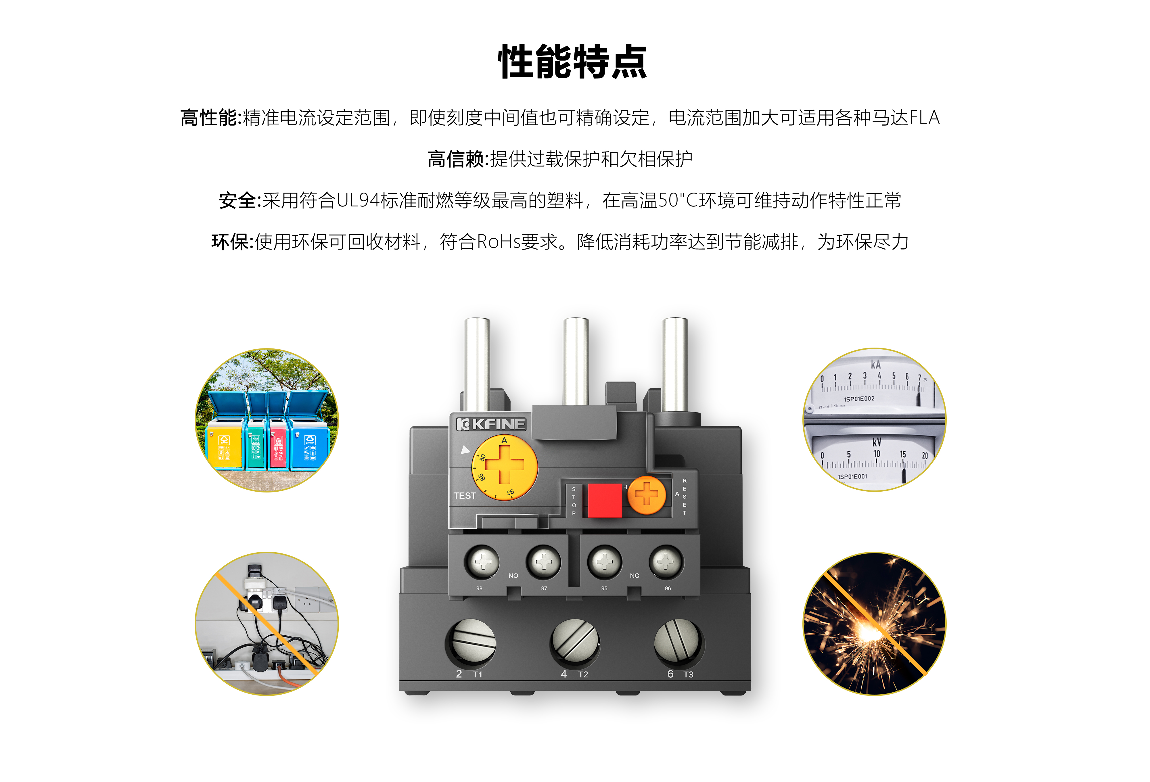 ●高性能:精准电流设定范围,即使刻度中间值也可精确设定,电流范围加大可适用各种马达FLA;